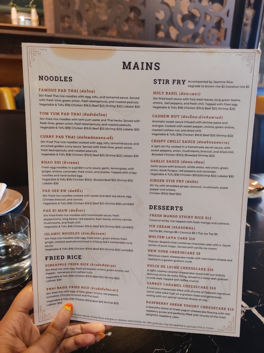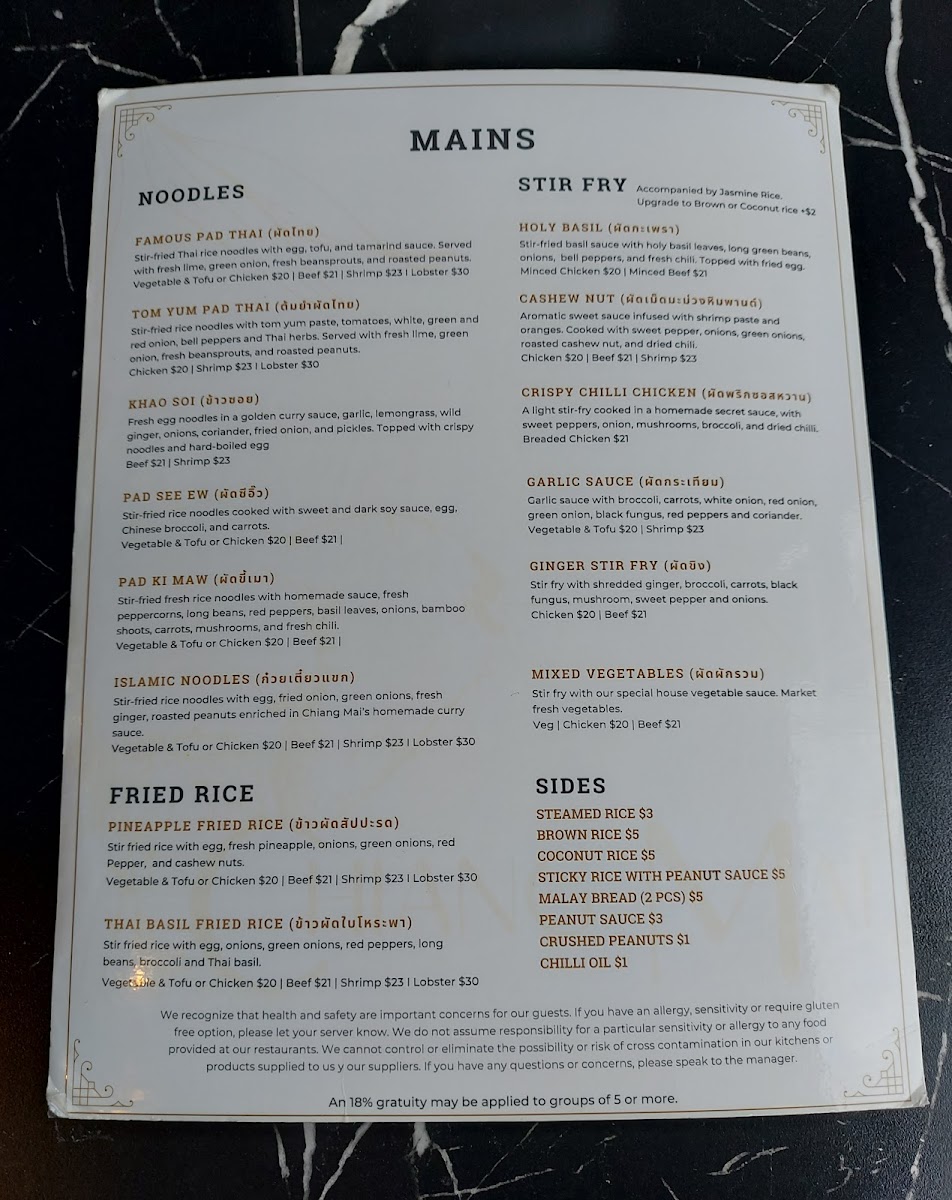 But the journey doesn’t end there. The Famous Pad Thai and Pineapple Fried Rice are among the standout dishes that have patrons coming back for more, often described as some of the best in the city. If you're in the mood for something hearty, the Khao Soi promises a rich, aromatic experience that captures the essence of Northern Thailand.